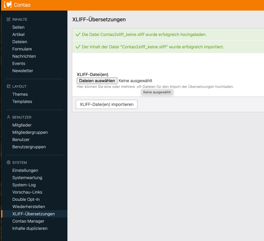 Die fertige Übersetzungsdatei können Sie einfach wieder in Contao importieren.
